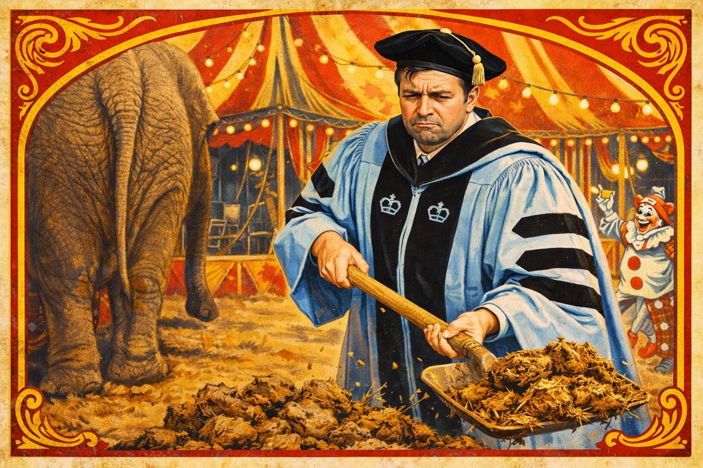 No matter how smart and diligent, it’s fairly likely that a PhD student will never receive his or her degree. Vast numbers of students waste long years in fruitless attempts to earn a PhD—often thwarted by lazy, disinterested, or intellectually dishonest faculty advisors and dysfunctional departments. (My own PhD was delayed around 15 years thanks to such circumstances.) Even if the student eventually receives the PhD, doing so may have required so many years and/or so many intellectual compromises as to dull his or her capacity to conduct meaningful work. I explored these problems in my 2024 essay, “Pangolins, Bats, Zionism, and Patriarchy: An Equity-Based, Gender-Nonconforming, Anti-Colonialist, Zero-Carbon Investigation into the Origins of COVID.”